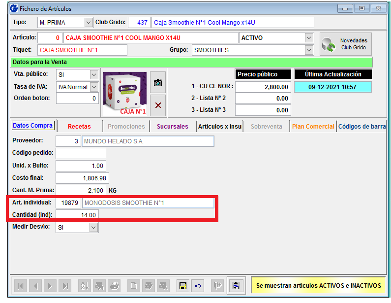 Caja Smoothie N°1 Cool Mango x14U