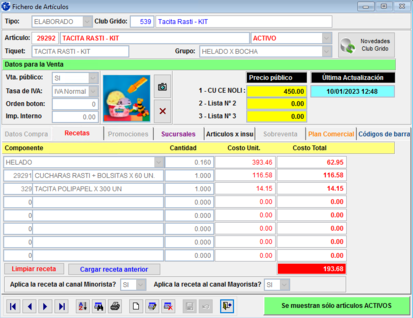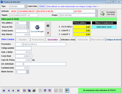 Desde SmartFran te sugerimos revisar y verificar que se encuentre bien cargado el insumo Cucharita Rasti: